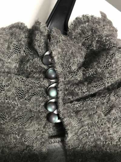 它是一个圆形的球形纽扣。制作精美,颜色会根据角度和光线的程度而变化。